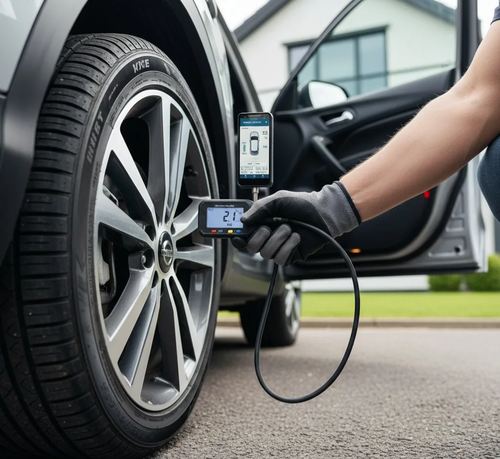 İlk olarak tüm lastiklerin basıncını ölçün. Genellikle Qashqai modelleri için önerilen basınç değerleri ön ve arka akslara göre değişmekle birlikte 33-36 PSI aralığındadır. Siz yine de kapı içi etiketinde yazan değerleri baz alın. Basınçlar doğruysa bir sonraki adıma geçebilirsiniz.